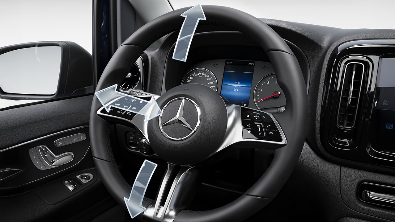 Volante multifunción ajustable en altura e inclinación.